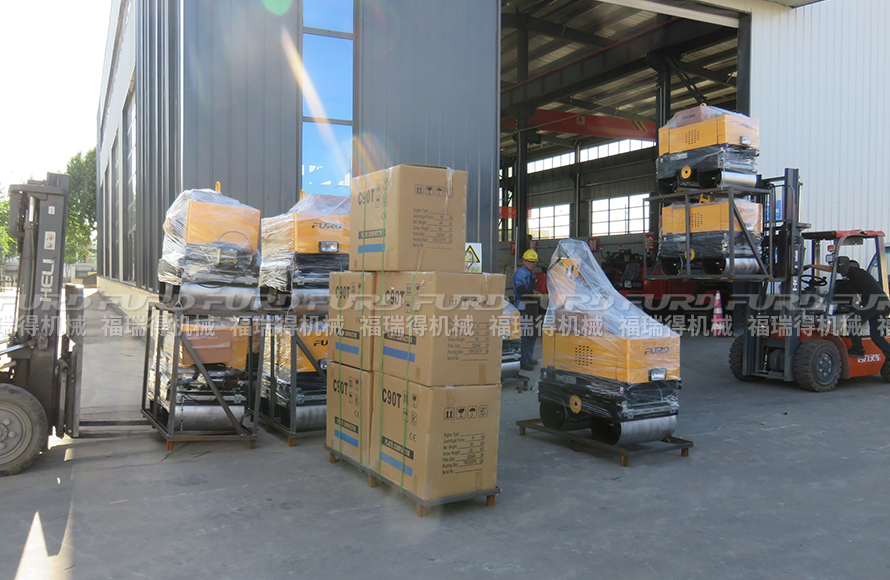 6月5日,福瑞得機(jī)械12臺(tái)手扶雙鋼輪壓路機(jī)打包裝柜出口澳大利亞。