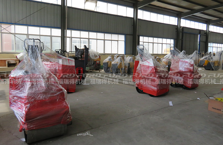福瑞得4臺手扶雙鋼輪壓路機(jī)打包發(fā)往菏澤市