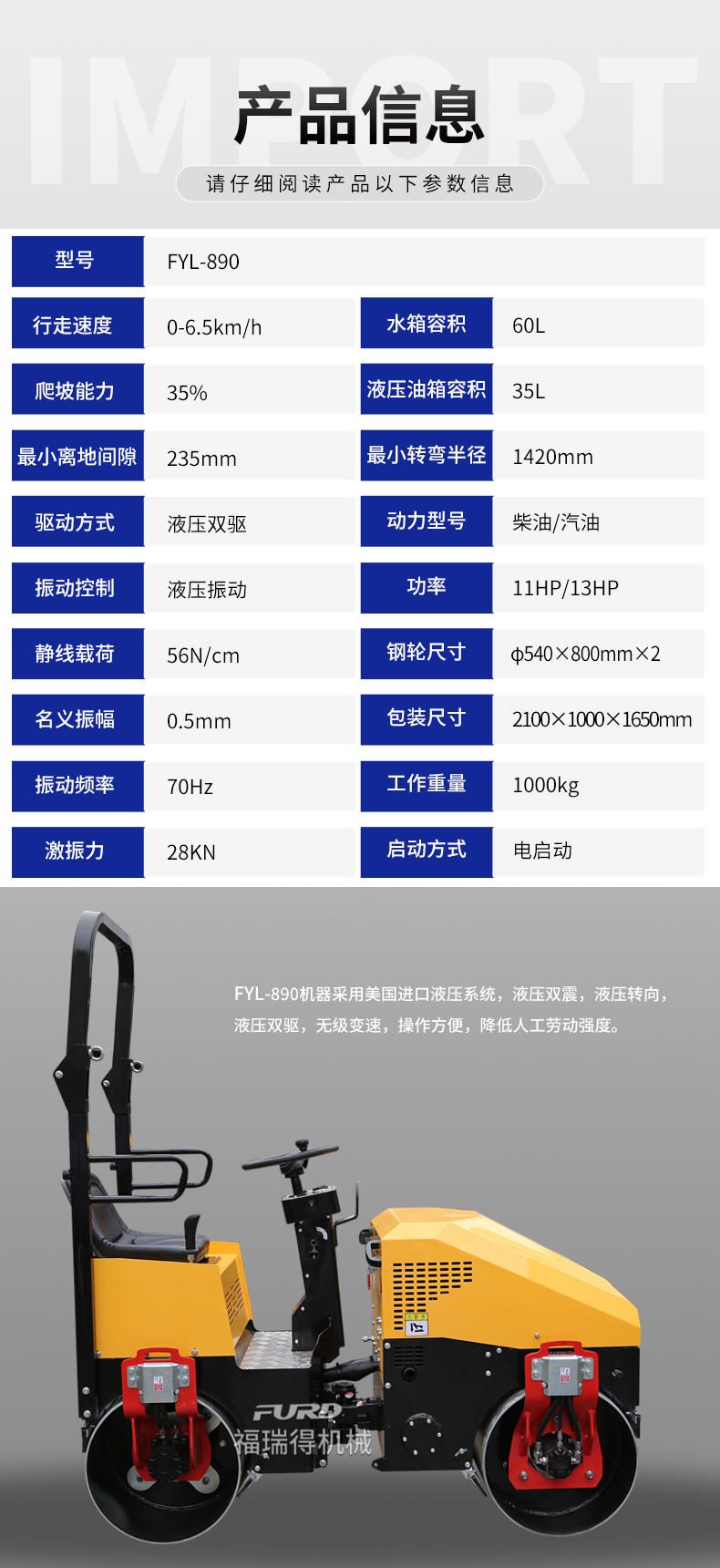 FYL-890 小型全液壓振動壓路機