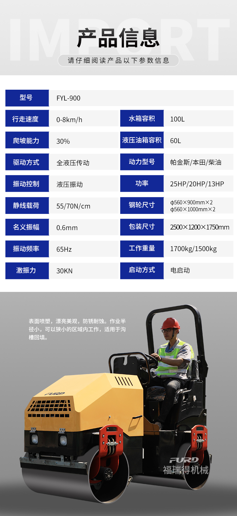 FYL-900 1.7T全液壓振動壓路機,小型壓路機