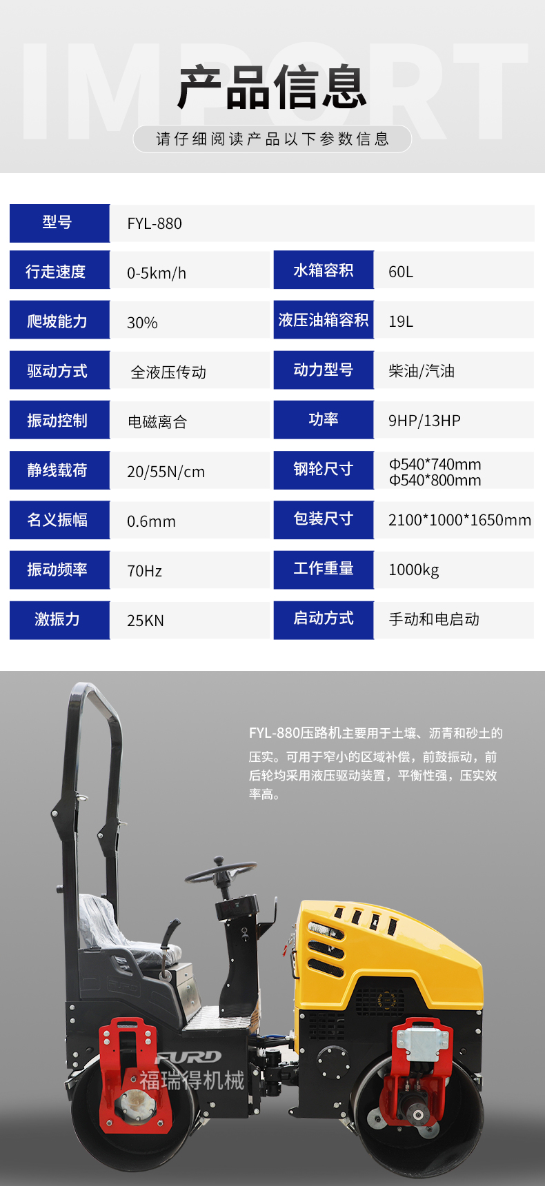 主要用于溝渠基礎(chǔ),道路,體育場地的壓實整平,也可用于壓實瀝青表面的作業(yè)。