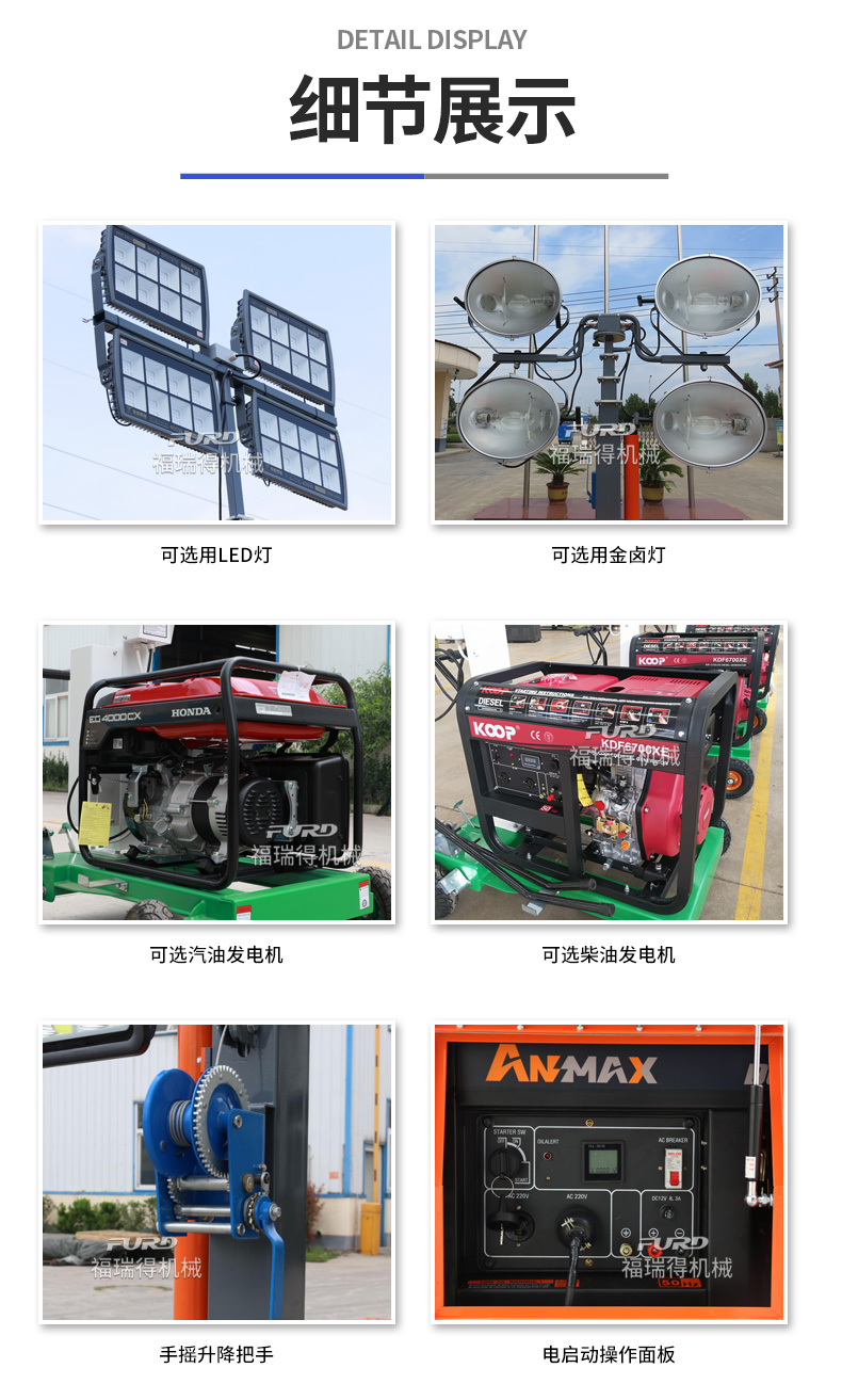 用于體育場館、機場、碼頭等大型公共場所,公路、鐵路、電力等緊急搶險現(xiàn)場,露天采礦現(xiàn)場,以及防洪防汛、搶險救災現(xiàn)場等其他需要緊急備用光源、電源的場合。