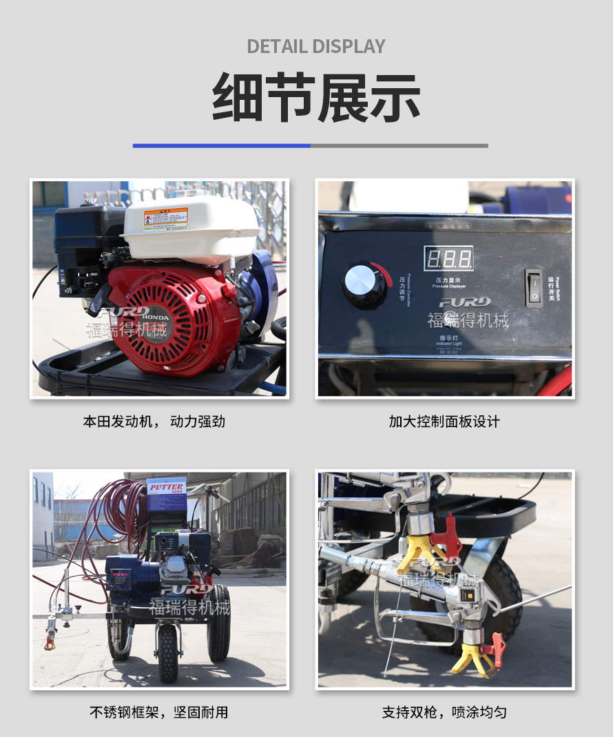 小型手推式道路劃線機(jī)是一種在道路、停車場(chǎng)、廣場(chǎng)和跑道等平整地面上劃出不同約束、指引和警示等規(guī)則限制標(biāo)志的路面施工機(jī)械。最常見的就是在馬路上劃斑馬線,在路上劃車庫線、停車線等等應(yīng)用于小型工程、短途施工,活動(dòng)方便,靈活操作。