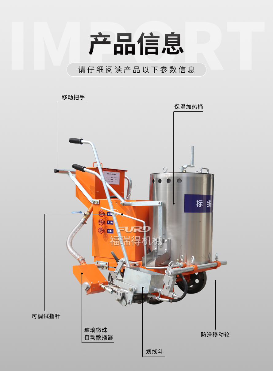 應(yīng)用于道路、高速公路、停車場、廣場和跑道的在平整地面上劃出不同約速、指引和警示等規(guī)則限制標(biāo)志的路面施工機(jī)械。