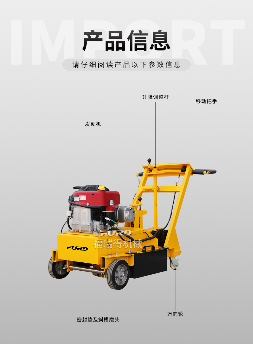 特點(diǎn):體積小、重量輕、機(jī)動(dòng)靈活、工作效率高、操作簡(jiǎn)單。 適應(yīng)范圍:主要用于瀝青道路、混凝土道路、物業(yè)小區(qū)、機(jī)場(chǎng)、停車場(chǎng)等地的標(biāo)線清除。