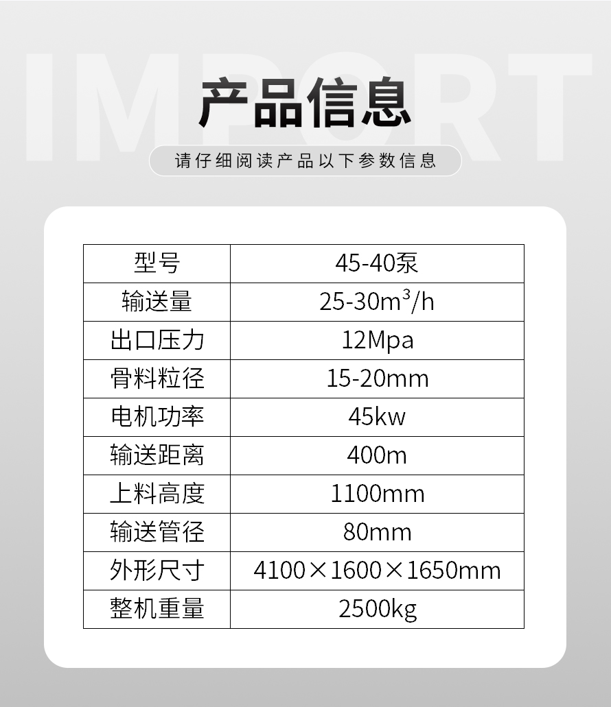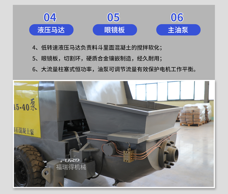 產(chǎn)品介紹: 1,大流量 采用加粗料缸,讓機(jī)械每一次循環(huán)出料多20% 2,效率高 移動便捷全部采用快接式管道卡,提高工作效率 3,便捷 本機(jī)可遠(yuǎn)程遙控,操作不受地點(diǎn)限制,更加人性化 產(chǎn)品用途: 坡道灌漿,水平地面,隧道澆筑,模