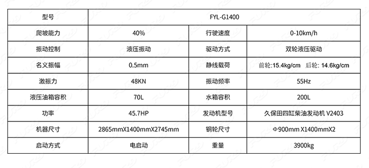 FYL-G1400  4噸全液壓雙鋼輪凸輪壓路機
